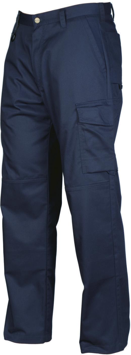 Midjebyxa utan frontveck. Sidfickor fram, säkerhetsficka med blixtlås på höger sida. Två utanpåliggande bakfickor. Två benfickor. Vänster benficka har lock och mobilficka invändigt. Höger benficka har plats för mobiltelefon, pennor, papper och tumstock. D-ring för nycklar, ID-kort etc. Invändiga knäskyddsfickor. Hällor under bakfickor och benfickor att fästa Inbags i.