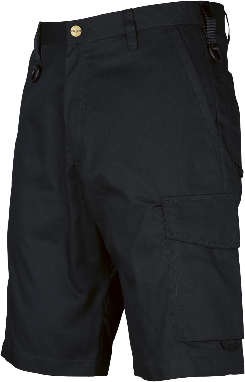 Shorts utan frontveck. Sidfickor fram, säkerhetsficka med blixtlås på höger sida. Två utanpåliggande bakfickor. Två benfickor. Vänster benficka har lock och mobilficka invändigt. Höger benficka har plats för mobiltelefon, pennor, papper och tumstock. D-ring fram. Hällor under bakfickor och benfickor att fästa Inbags i.