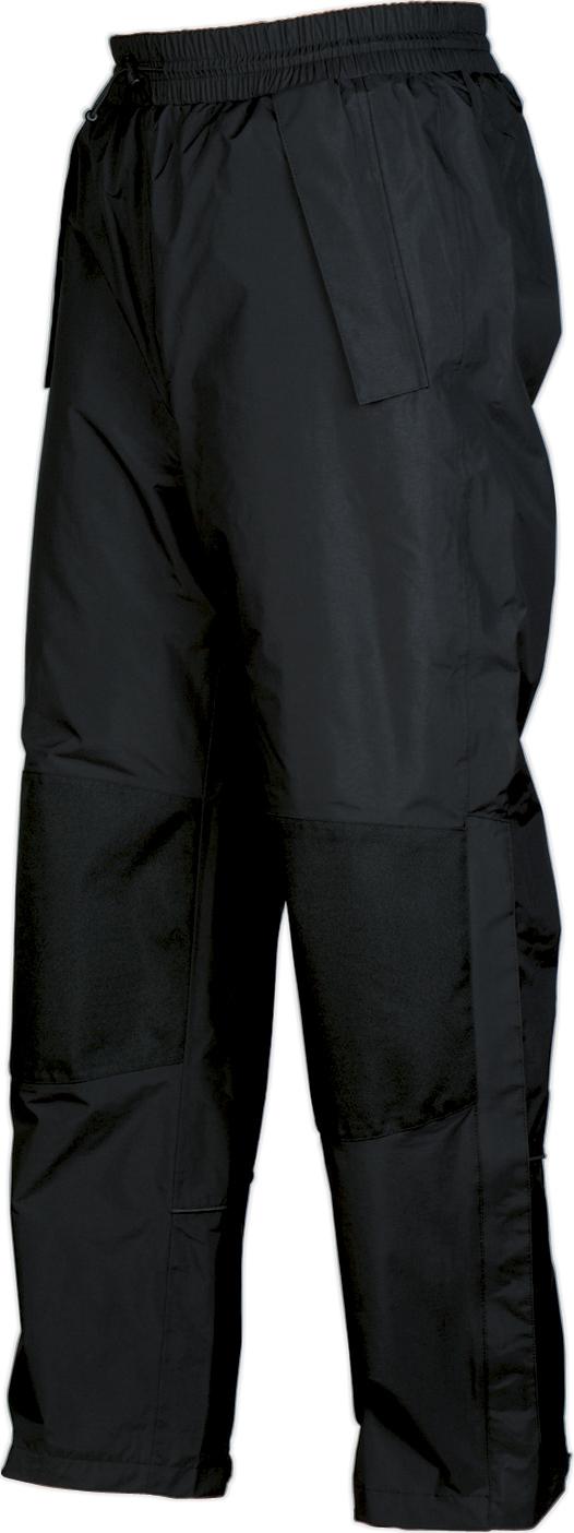 Överdragsbyxa som har öppning med blixtlås upp till knät. Tejpade sömmar. Förstärkningsmaterial över knät. Dragsko och resår i midjan. Mörk reflexpiping bak. Slå som skyddar blixtlåset i sidan, kardborreförslutning i byxavslut. Två djupa sidfickor med blixtlås.