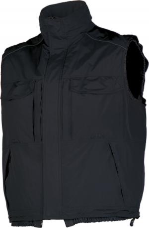 Vind- och vattentät väst med andningsegenskaper och tejpade sömmar, slitstark oxfordnylon. Två stora bröstfickor med lock och plats för Inbags. Vertikala fickor med blixtlås fram på vardera sida av bröstfickorna. Fickorna har utrymme för handskar eller dokument. Blixtlås ända upp i kragen, skyddas av slå med dolda tryckknappar. Resårkant som skyddar mot vind i ärmöppning. Vindskydd med resår och tryckknappar på insidan av väst. Dragsko med enhandsgrepp. Kviltat foder. Mörka reflexpasspoaler i ok. Blixtlås på insidan av fodret för tryck eller brodyr.