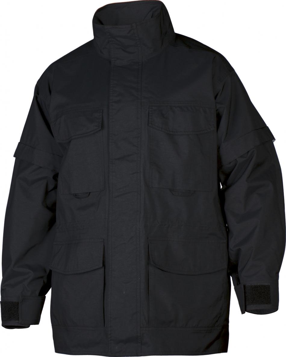 Vind- och vattentät parkas med andningsegenskaper och tejpade sömmar i slitstark oxfordnylon. Nätfoder i övre del av foder, för god ventilation. Hög krage. Två stora bröstfickor med lock och plats för Inbags. Bottenfickor med bälg och ficklock. Helt blixtlås ända upp i kragen som skyddas av slå med dolda tryckknappar. Rymliga innerfickor med plats för dokument, två med blixtlås. Ärm med uppvikbar reflex – flexibel lösning för extra säkerhet. Manschett med kardborreförslutning. Dragsko med stoppers i sidan. Blixtlås på insidan av fodret för tryck eller brodyr.
