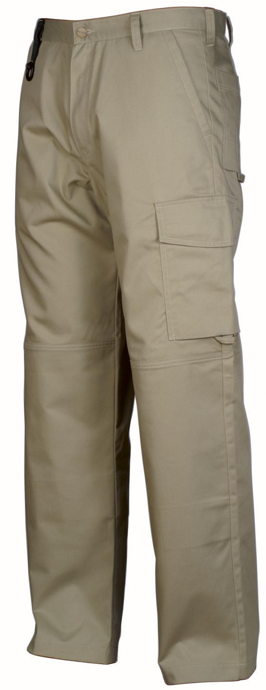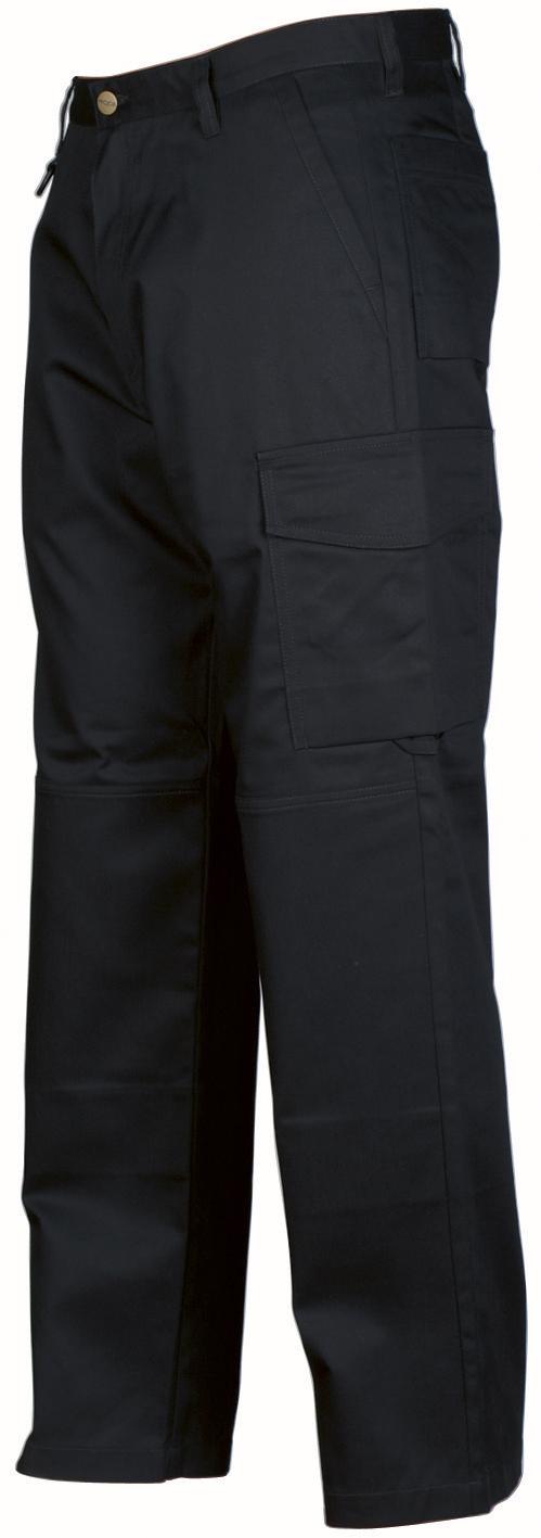 Midjebyxa utan frontveck. Sidfickor fram, säkerhetsficka med blixtlås på höger sida. Två utanpåliggande bakfickor. Två benfickor. Vänster benficka har lock och mobilficka invändigt. Höger benficka har plats för mobiltelefon, pennor, papper och tumstock. D-ring för nycklar, ID-kort etc. Invändiga knäskyddsfickor. Hällor under bakfickor och benfickor att fästa Inbags i.