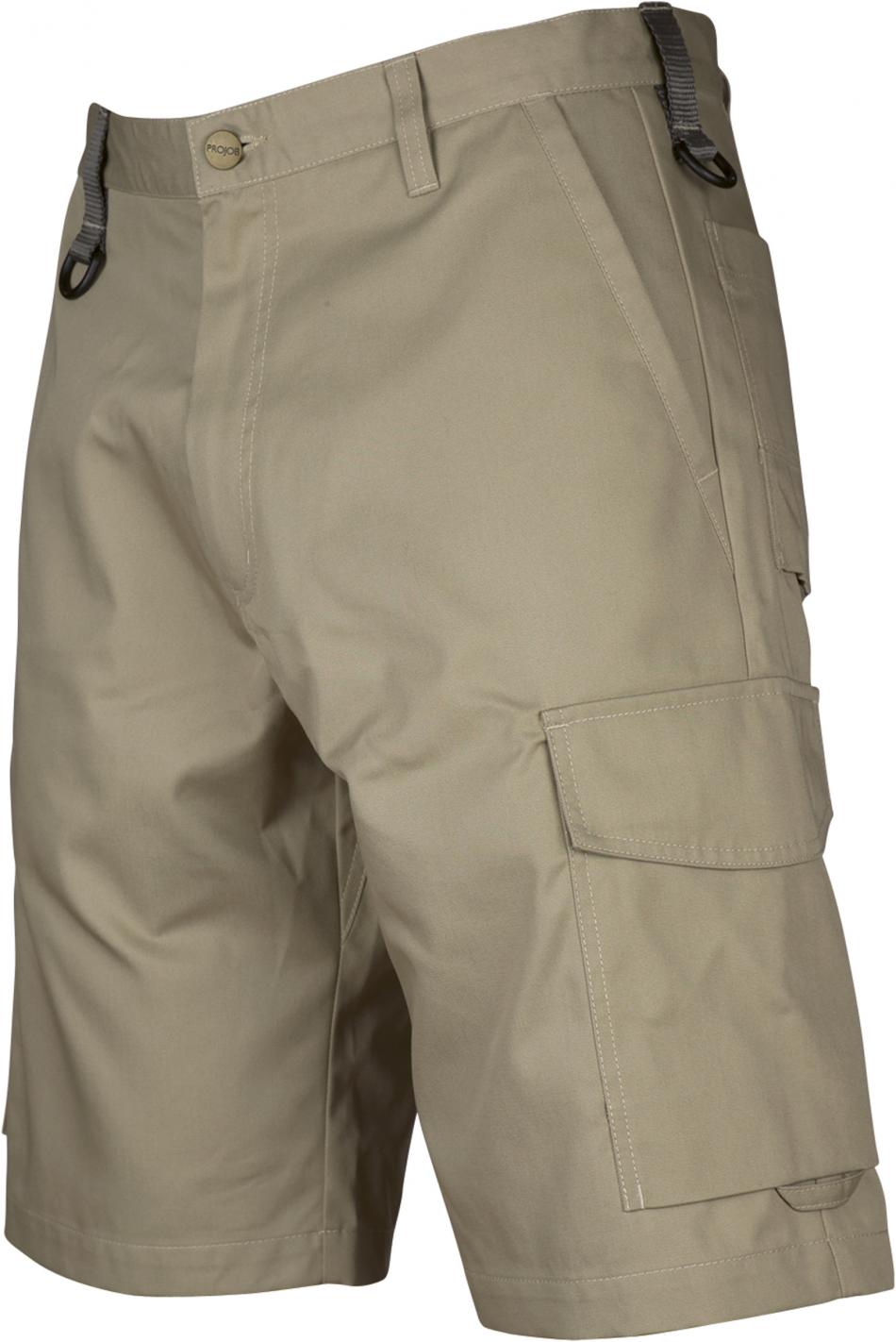 Shorts utan frontveck. Sidfickor fram, säkerhetsficka med blixtlås på höger sida. Två utanpåliggande bakfickor. Två benfickor. Vänster benficka har lock och mobilficka invändigt. Höger benficka har plats för mobiltelefon, pennor, papper och tumstock. D-ring fram. Hällor under bakfickor och benfickor att fästa Inbags i.