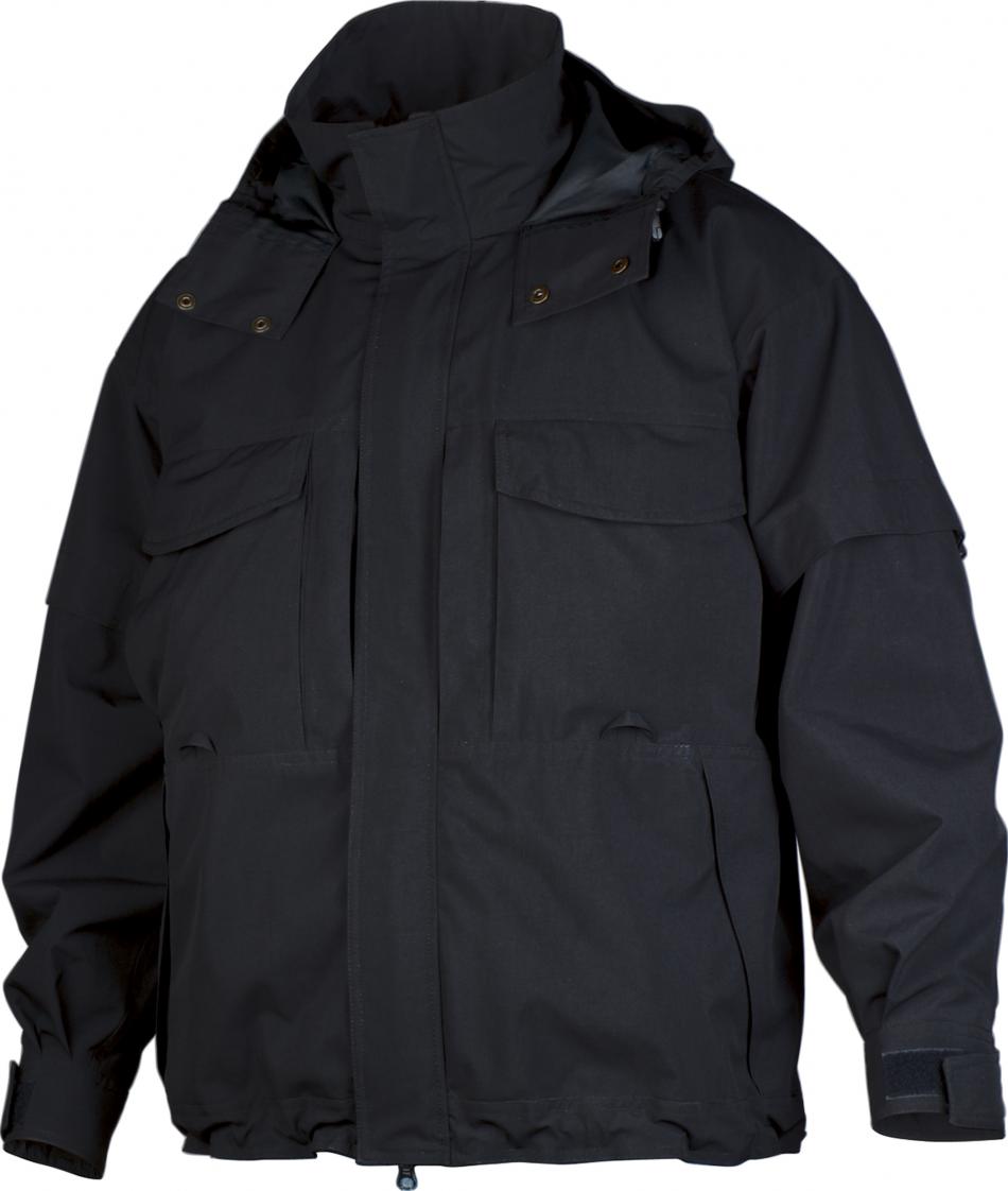 Vind- och vattentät jacka med andningsegenskaper och tejpade sömmar, i slitstark oxfordnylon. Nät i övre del av foder för god ventilation. Krage med infälld huva. Två stora bröstfickor med lock och plats för Inbags. Vertikala fickor med blixtlås fram på vardera sida av bröstfickorna, med utrymme för handskar eller dokument. Helt blixtlås ända upp i kragen, skyddas av slå med dolda tryckknappar. Ärm med uppvikbar reflex – flexibel lösning för extra säkerhet. Manschett med kardborreförslutning. Dragsko med enhandsgrepp i sidan. Blixtlås på insidan för tryck eller brodyr.
