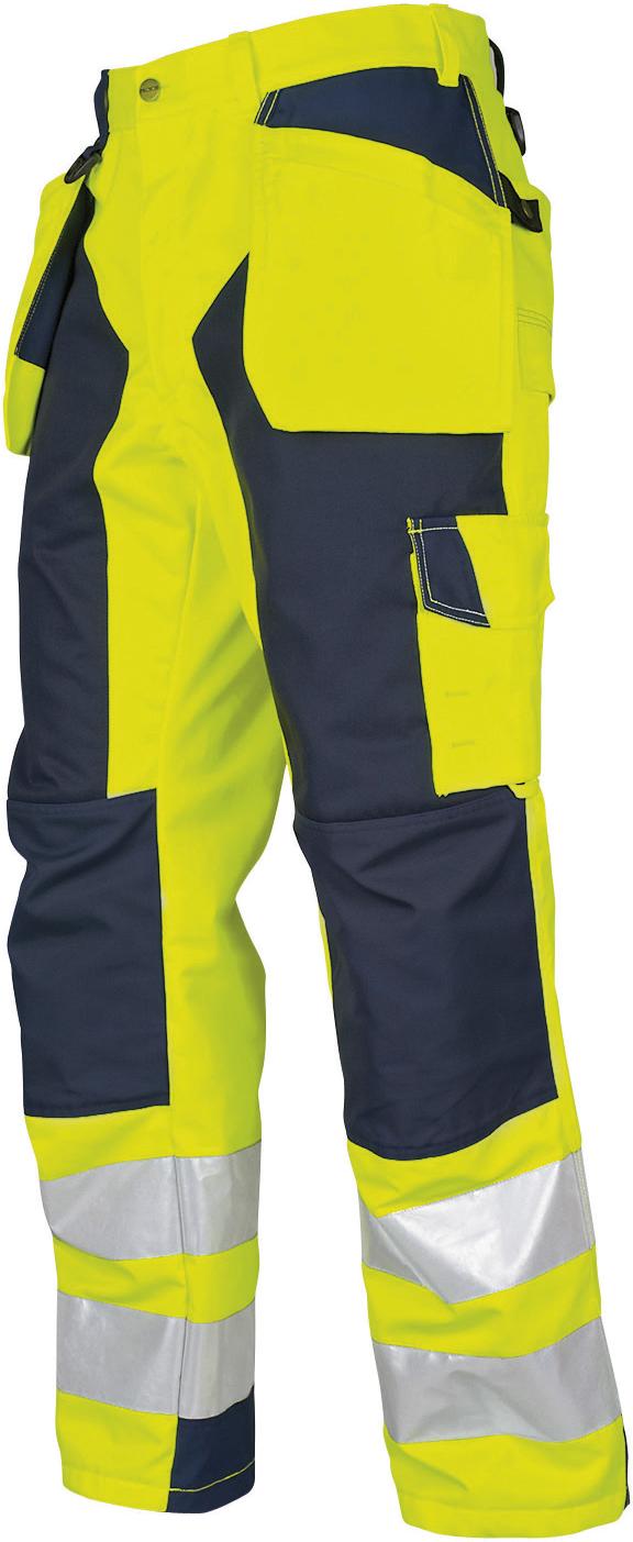Vattentät 3-lagersbyxa. Två hängande undanstoppningsbara spikfickor; en med extra fickor och en med verktygshällor. Spikfickorna är förstärkta med 100% polyamid. Dubbelt tyg över låren. Benfickor med telefonficka, pennficka och verktygsficka. Två reglerbara hammarhankar. Två D-ringar. Tumstocksficka med verktygsficka och knivknapp. Knäförstärkningar i polyamid som öppnas inifrån och reglerbar höjd av knäskydden. Förböjda knän. Polyamidförstärkning längst ner på baksidan av benen. Bakfickor med övervidd. Bakfickor och benfickor har hällor för Inbags.