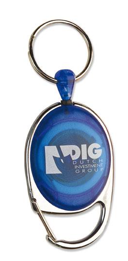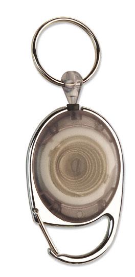 Transparent passerkorthållare med utdragbar snodd och metallspänne.